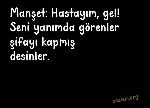 Manşet: Hastayım, gel! Seni yanımda görenler şifayı kapmış desinler. ( Aşk İle İlgili Güzel Sözler )