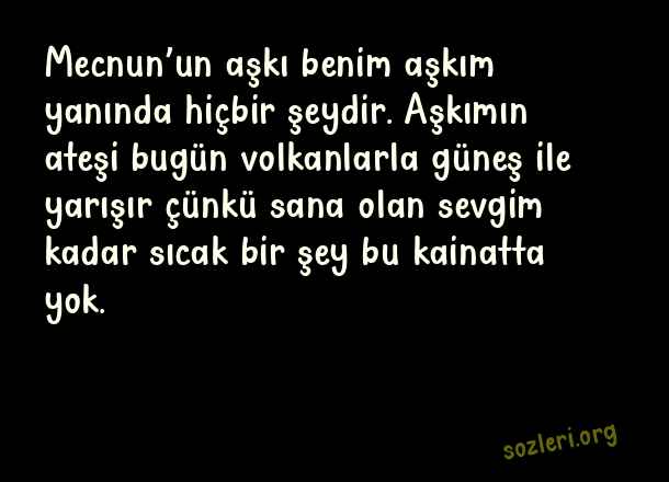 Mecnun’un aşkı benim aşkım yanında hiçbir şeydir. Aşkımın ateşi bugün volkanlarla güneş ile yarışır çünkü sana olan sevgim kadar sıcak bir şey bu kainatta yok. ( İnstagram Aşk )