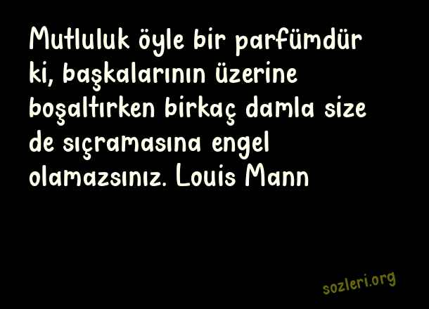 Mutluluk öyle bir parfümdür ki, başkalarının üzerine boşaltırken birkaç damla size de sıçramasına engel olamazsınız. Louis Mann ( Yazarlardan Aşk )