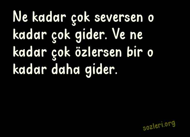 Ne kadar çok seversen o kadar çok gider. Ve ne kadar çok özlersen bir o kadar daha gider. ( Bitmiş Aşk )