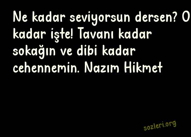 Ne kadar seviyorsun dersen? O kadar işte! Tavanı kadar sokağın ve dibi kadar cehennemin. Nazım Hikmet ( Felsefi Aşk )