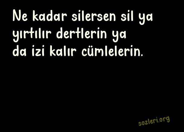 Ne kadar silersen sil ya yırtılır dertlerin ya da izi kalır cümlelerin. ( Elif Şafak Aşk )