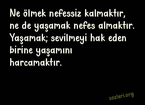 Ne ölmek nefessiz kalmaktır, ne de yaşamak nefes almaktır. Yaşamak; sevilmeyi hak eden birine yaşamını harcamaktır. ( Anlamlı Aşk )