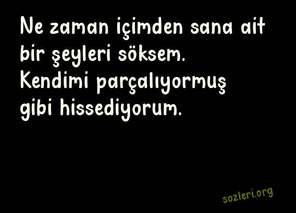 Ne zaman içimden sana ait bir şeyleri söksem. Kendimi parçalıyormuş gibi hissediyorum. ( Aşk Romanlarından Alıntılar )