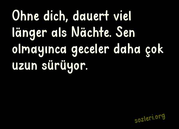 Ohne dich, dauert viel länger als Nächte. Sen olmayınca geceler daha çok uzun sürüyor. ( Almanca Aşk )