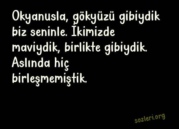 Okyanusla, gökyüzü gibiydik biz seninle. İkimizde maviydik birlikte gibiydik. Aslında hiç birleşmemiştik.