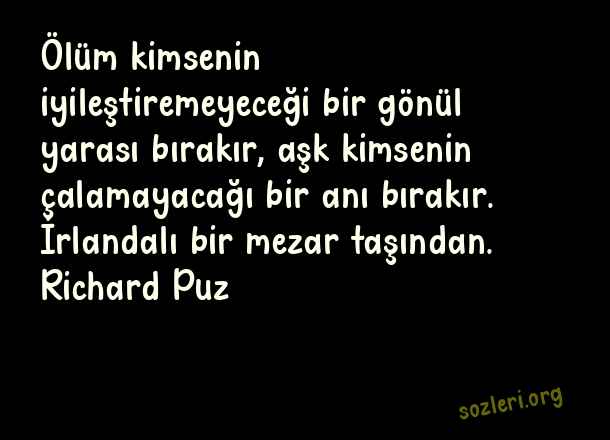 Ölüm kimsenin iyileştiremeyeceği bir gönül yarası bırakır, aşk kimsenin çalamayacağı bir anı bırakır. İrlandalı bir mezar taşından. Richard Puz ( Sonsuz Aşk )