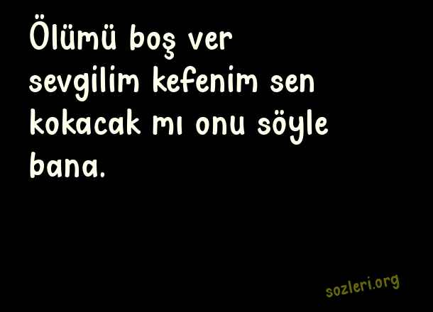 Ölümü boş ver sevgilim kefenim sen kokacak mı onu söyle bana. ( Aşk Kavanozu )