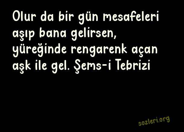 Olur da bir gün mesafeleri aşıp bana gelirsen, yüreğinde rengarenk açan aşk ile gel. Şems-i Tebrizi ( Sıradışı Aşk )