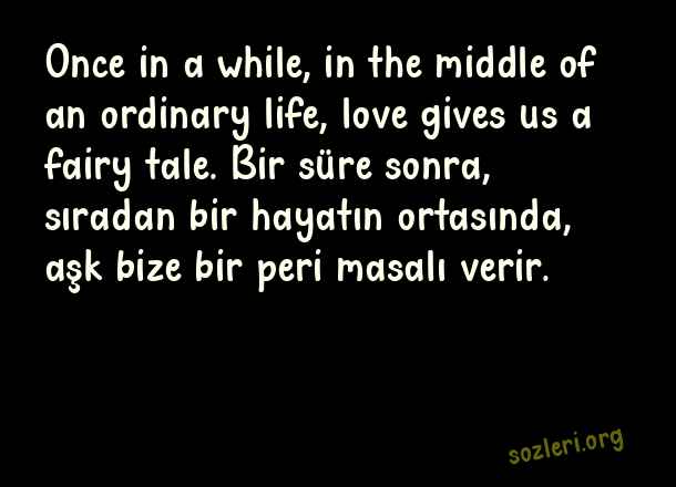 Once in a while, in the middle of an ordinary life, love gives us a fairy tale. Bir süre sonra, sıradan bir hayatın ortasında, aşk bize bir peri masalı verir. ( İngilizce Aşk )
