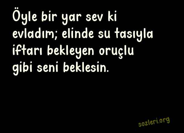 Öyle bir yar sev ki evladım; elinde su tasıyla iftarı bekleyen oruçlu gibi seni beklesin. ( Sevgiliye Sevilene En Güzel Kısa Uzun Aşk )