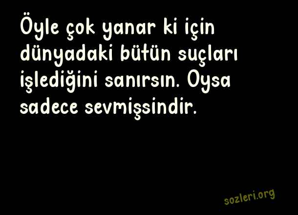 Öyle çok yanar ki için dünyadaki bütün suçları işlediğini sanırsın. Oysa sadece sevmişsindir. ( Sırılsıklam Aşk )
