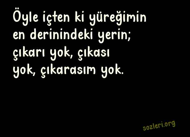 Öyle içten ki yüreğimin en derinindeki yerin; çıkarı yok, çıkası yok, çıkarasım yok. ( Sevgiliye Söylenecek En Güzel Aşk )