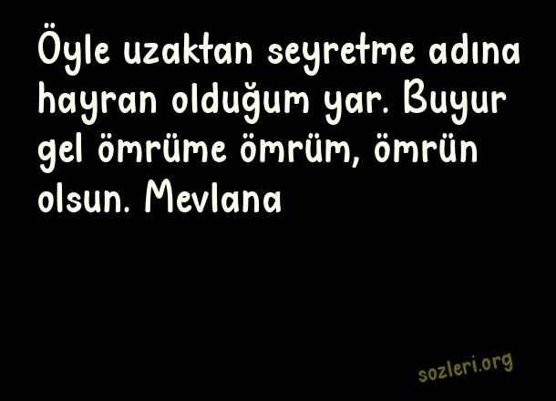 Öyle uzaktan seyretme adına hayran olduğum yar. Buyur gel ömrüme ömrüm, ömrün olsun. Mevlana ( Aşk )