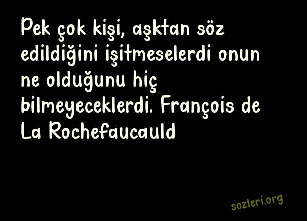 Pek çok kişi, aşktan söz edildiğini işitmeselerdi onun ne olduğunu hiç bilmeyeceklerdi. François de La Rochefaucauld ( Aşk İle İlgili Güzel Sözler )