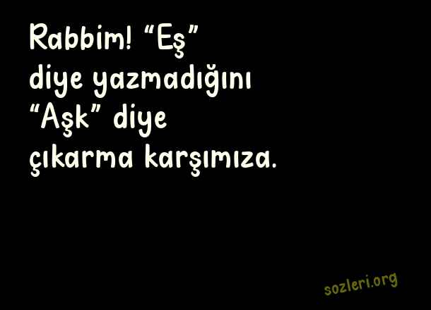 Rabbim! “Eş” diye yazmadığını “Aşk” diye çıkarma karşımıza. ( Aşk İle İlgili Güzel Sözler )