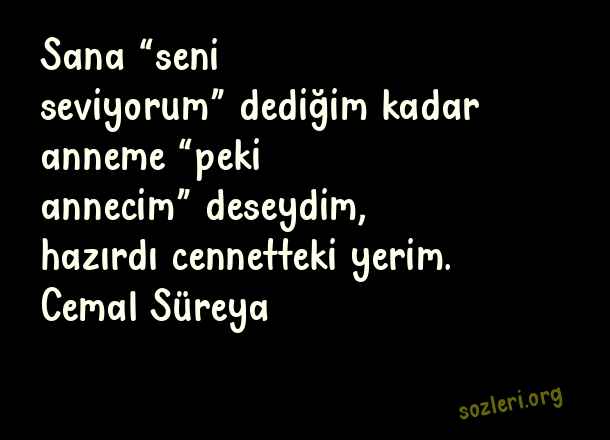 Sana “seni seviyorum” dediğim kadar anneme “peki annecim” deseydim, hazırdı cennetteki yerim. Cemal Süreya ( Felsefi Aşk )