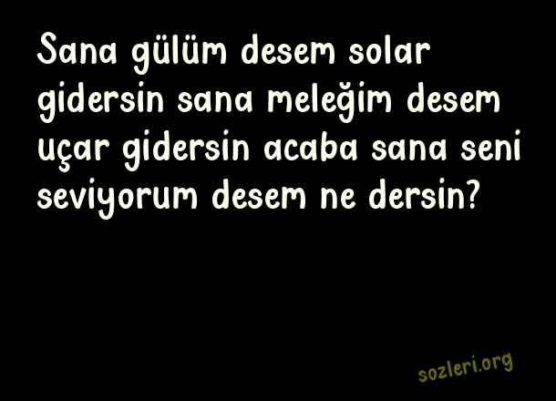 Sana gülüm desem solar gidersin sana meleğim desem uçar gidersin acaba sana seni seviyorum desem ne dersin? ( Sevgiliye Söylenecek En Güzel Aşk )