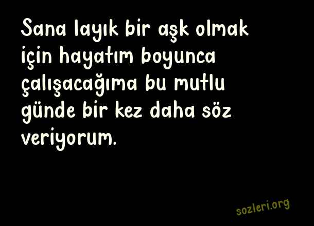 Sana layık bir aşk olmak için hayatım boyunca çalışacağıma bu mutlu günde bir kez daha söz veriyorum. ( Aşkıma Güzel Sözler )