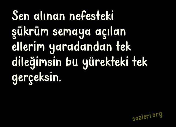 Sen alınan nefesteki şükrüm semaya açılan ellerim yaradandan tek dileğimsin bu yürekteki tek gerçeksin. ( Eşe Aşk )