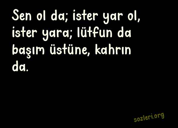 Sen ol da; - Aşka Dair Sözler .. Sen ol da; ister yar ol, ister yara; lütfun da başım üstüne, kahrın da. ( Aşka Dair Sözler )