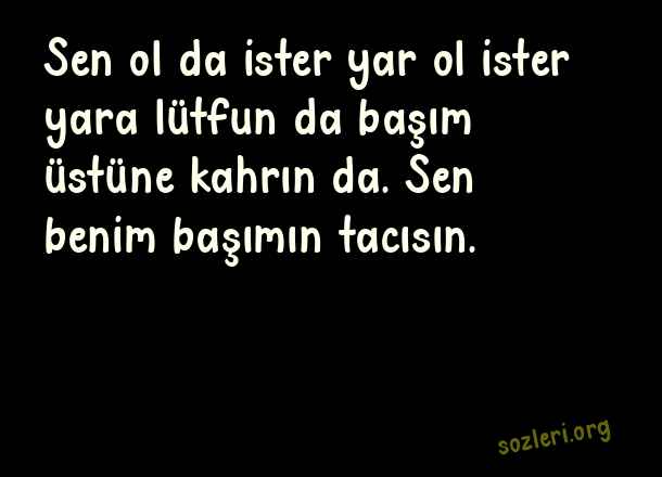 Sen ol da ister yar ol ister yara lütfun da başım üstüne kahrın da. Sen benim başımın tacısın. ( Aşkıma Güzel Sözler )
