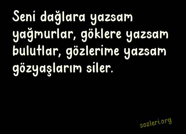 Seni dağlara yazsam yağmurlar, göklere yazsam bulutlar, gözlerime yazsam gözyaşlarım siler. ( Manalı Aşk )