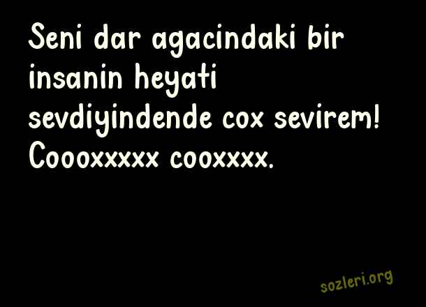 Seni dar agacindaki bir insanin heyati sevdiyindende cox sevirem! Coooxxxxx cooxxxx. ( Azerice Aşk )