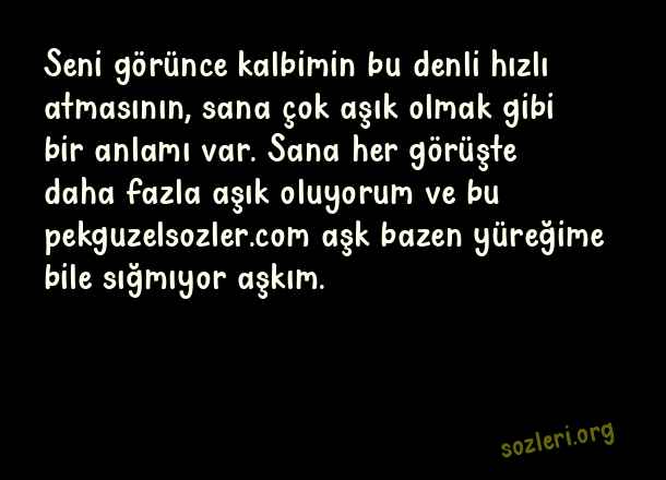 Seni görünce kalbimin bu denli hızlı atmasının, sana çok aşık olmak gibi bir anlamı var. Sana her görüşte daha fazla aşık oluyorum ve bu aşk bazen yüreğime bile sığmıyor aşkım. ( Sevgiliye Aşk Notları )