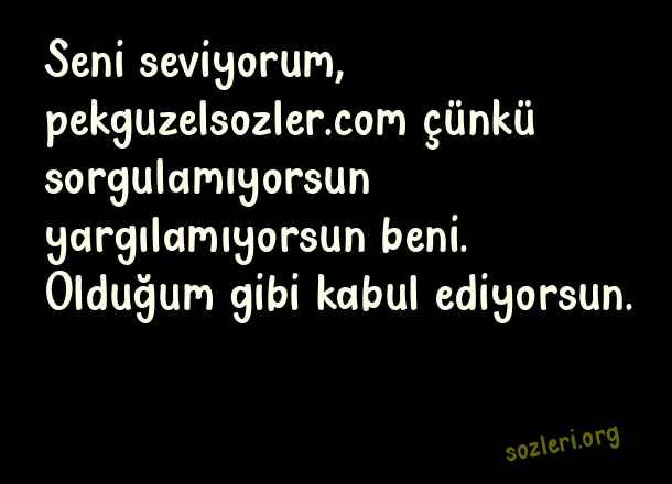 Seni seviyorum, çünkü sorgulamıyorsun yargılamıyorsun beni. Olduğum gibi kabul ediyorsun. ( Aşk Kavanozu )