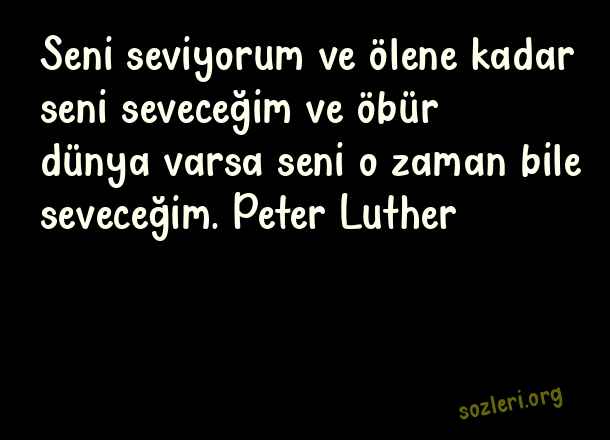 Seni seviyorum ve ölene kadar seni seveceğim ve öbür dünya varsa seni o zaman bile seveceğim. Peter Luther ( Sonsuz Aşk )