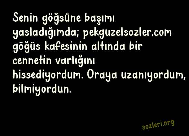 Senin göğsüne başımı yasladığımda; göğüs kafesinin altında bir cennetin varlığını hissediyordum. Oraya uzanıyordum, bilmiyordun. ( Havalı Aşk )