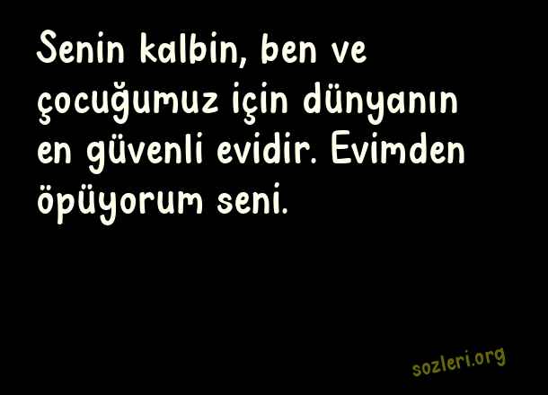 Senin kalbin, ben ve çocuğumuz için dünyanın en güvenli evidir. Evimden öpüyorum seni. ( Aşk Lafları )