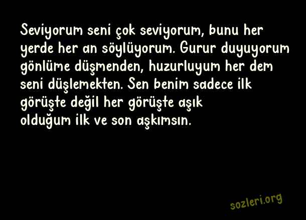 Seviyorum seni çok seviyorum, bunu her yerde her an söylüyorum. Gurur duyuyorum gönlüme düşmenden, huzurluyum her dem seni düşlemekten. Sen benim sadece ilk görüşte değil her görüşte aşık olduğum ilk ve son aşkımsın. ( Uzun Aşk )