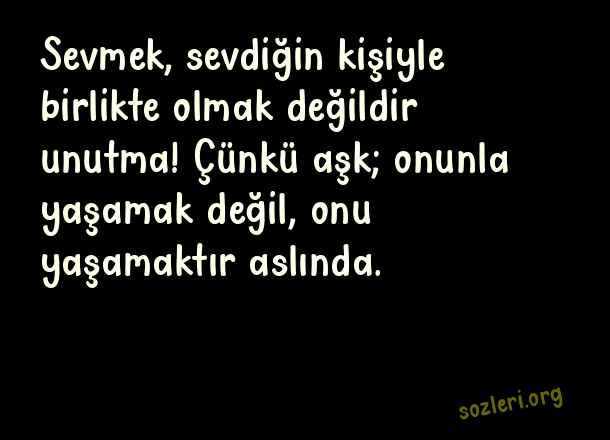 Sevmek, sevdiğin kişiyle birlikte olmak değildir unutma! Çünkü aşk; onunla yaşamak değil, onu yaşamaktır aslında. ( Aşka Dair Sözler )