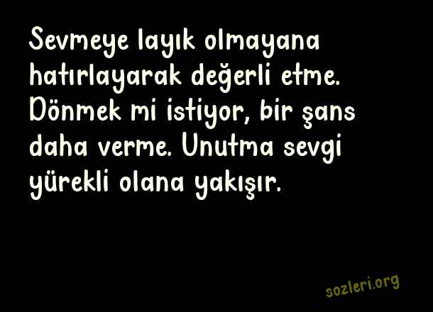 Sevmeye layık olmayanı hatırlayarak değerli etme, dönmek mi istiyor, bir şans daha verme. Unutma sevgi yürekli olana yakışır.