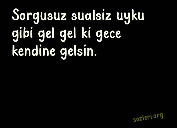 Sorgusuz sualsiz uyku gibi gel gel ki gece kendine gelsin. ( Mest Eden Aşk )
