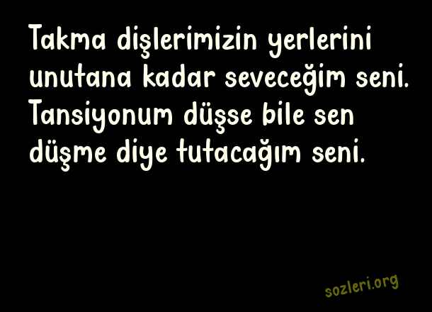 Takma dişlerimizin yerlerini unutana kadar seveceğim seni. Tansiyonum düşse bile sen düşme diye tutacağım seni. ( Garip Aşk )
