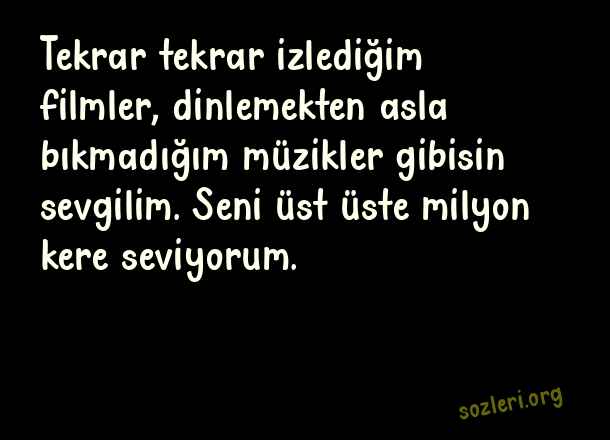 Tekrar tekrar izlediğim filmler, dinlemekten asla bıkmadığım müzikler gibisin sevgilim. Seni üst üste milyon kere seviyorum. ( Etkileyici Güzel Aşk )