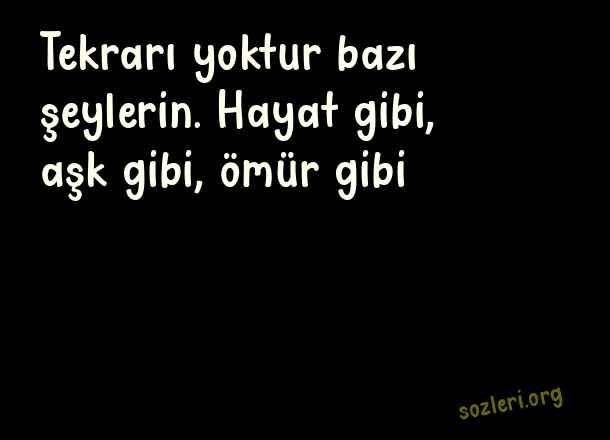 Tekrarı yoktur bazı şeylerin. Hayat gibi aşk gibi ömür gibi.