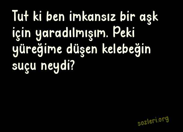 Tut ki ben - İmkansız Aşk Sözleri .. Tut ki ben imkansız bir aşk için yaradılmışım. Peki yüreğime düşen kelebeğin suçu neydi? ( İmkansız Aşk )