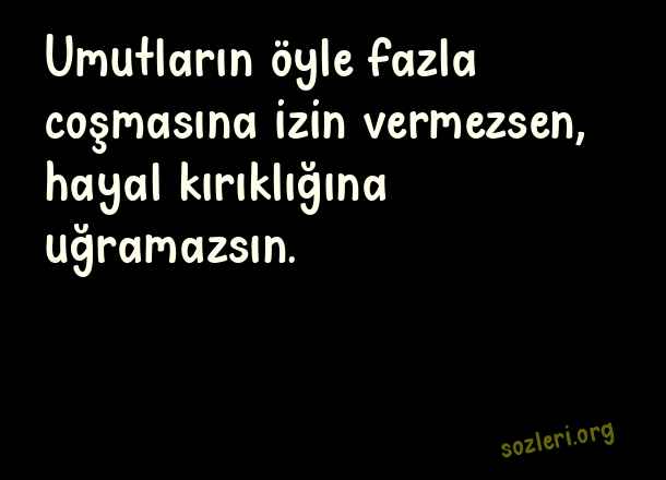 Umutların öyle fazla coşmasına izin vermezsen, hayal kırıklığına uğramazsın. ( Aşk Romanlarından Alıntılar )