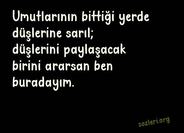 Umutlarının bittiği yerde düşlerine sarıl; düşlerini paylaşacak birini ararsan ben buradayım. ( Etkileyici Güzel Aşk )