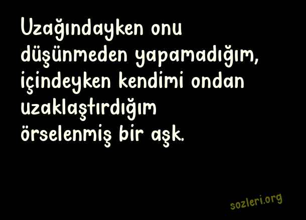 Uzağındayken onu düşünmeden yapamadığım, içindeyken kendimi ondan uzaklaştırdığım örselenmiş bir aşk. ( Elif Şafak Aşk )