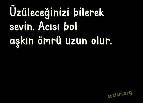 Üzüleceğinizi bilerek sevin. Acısı bol aşkın ömrü uzun olur. ( Aşk Dolu Sözler )