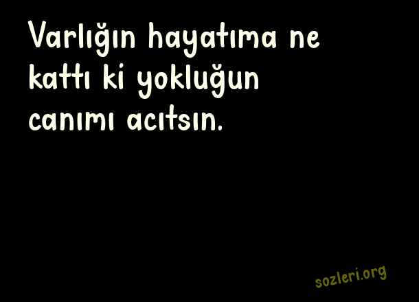 Varlığın hayatıma ne kattı ki yokluğun canımı acıtsın. ( Sitemli Aşk )