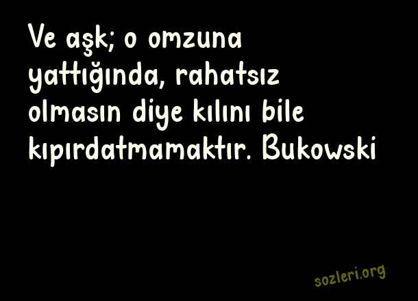 Ve aşk; o omzuna yattığında, rahatsız olmasın diye kılını bile kıpırdatmamaktır. Bukowski ( Yazarlardan Aşk )