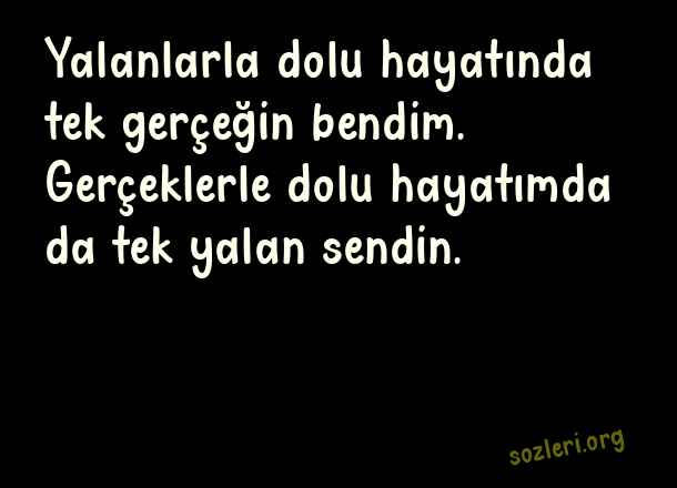 Yalanlarla dolu hayatında tek gerçeğin bendim. Gerçeklerle dolu hayatımda da tek yalan sendin. ( Bitmiş Aşk )