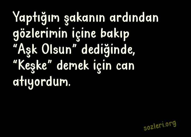 Yaptığım şakanın ardından gözlerimin içine bakıp “Aşk Olsun” dediğinde, “Keşke” demek için can atıyordum. ( Etkileyici Güzel Aşk )