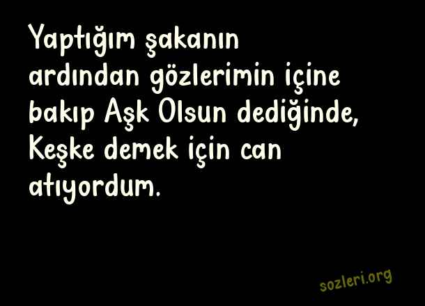 Yaptığım şakanın ardından gözlerimin içine bakıp Aşk Olsun dediğinde, Keşke demek için can atıyordum. ( Anlamlı Aşk )